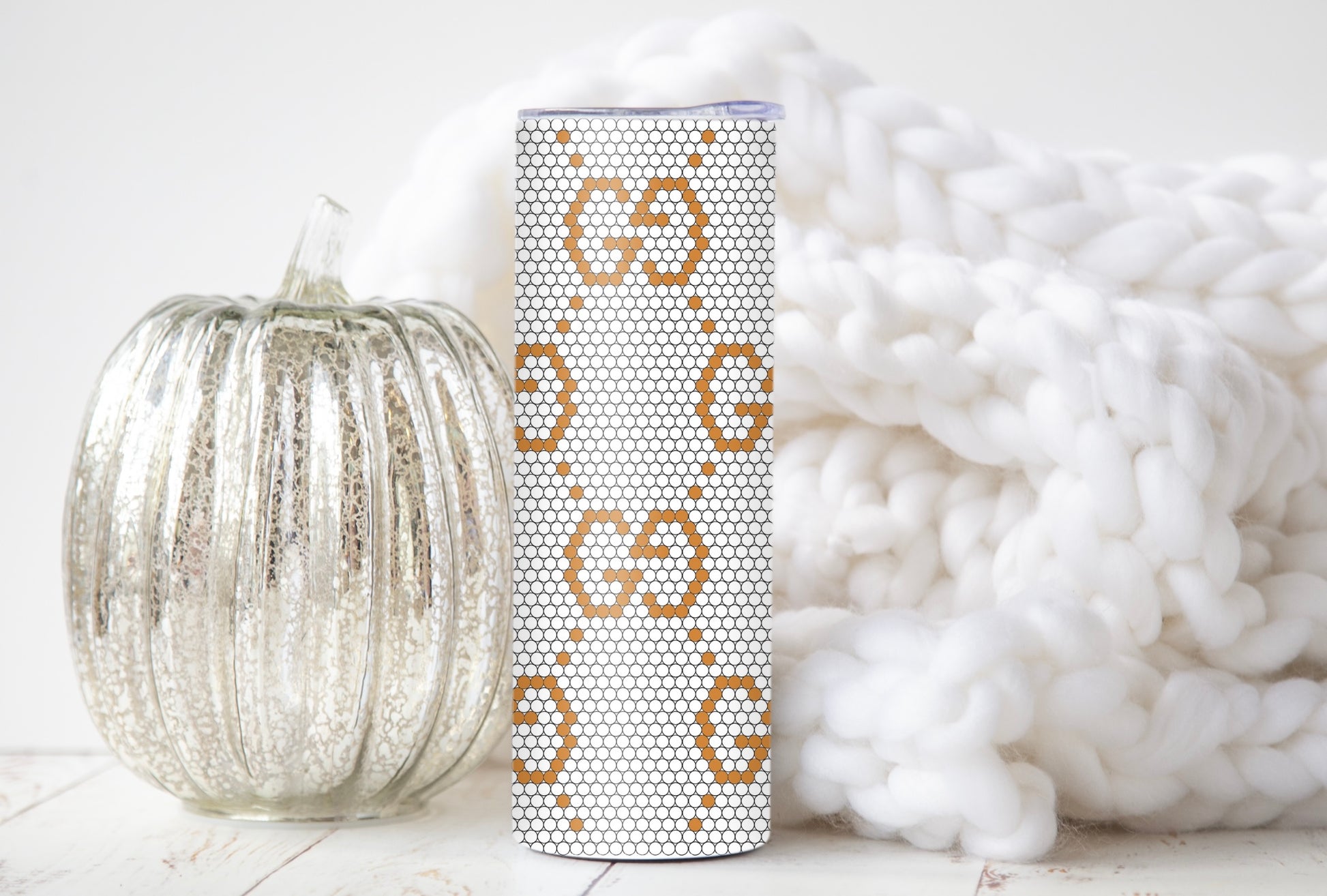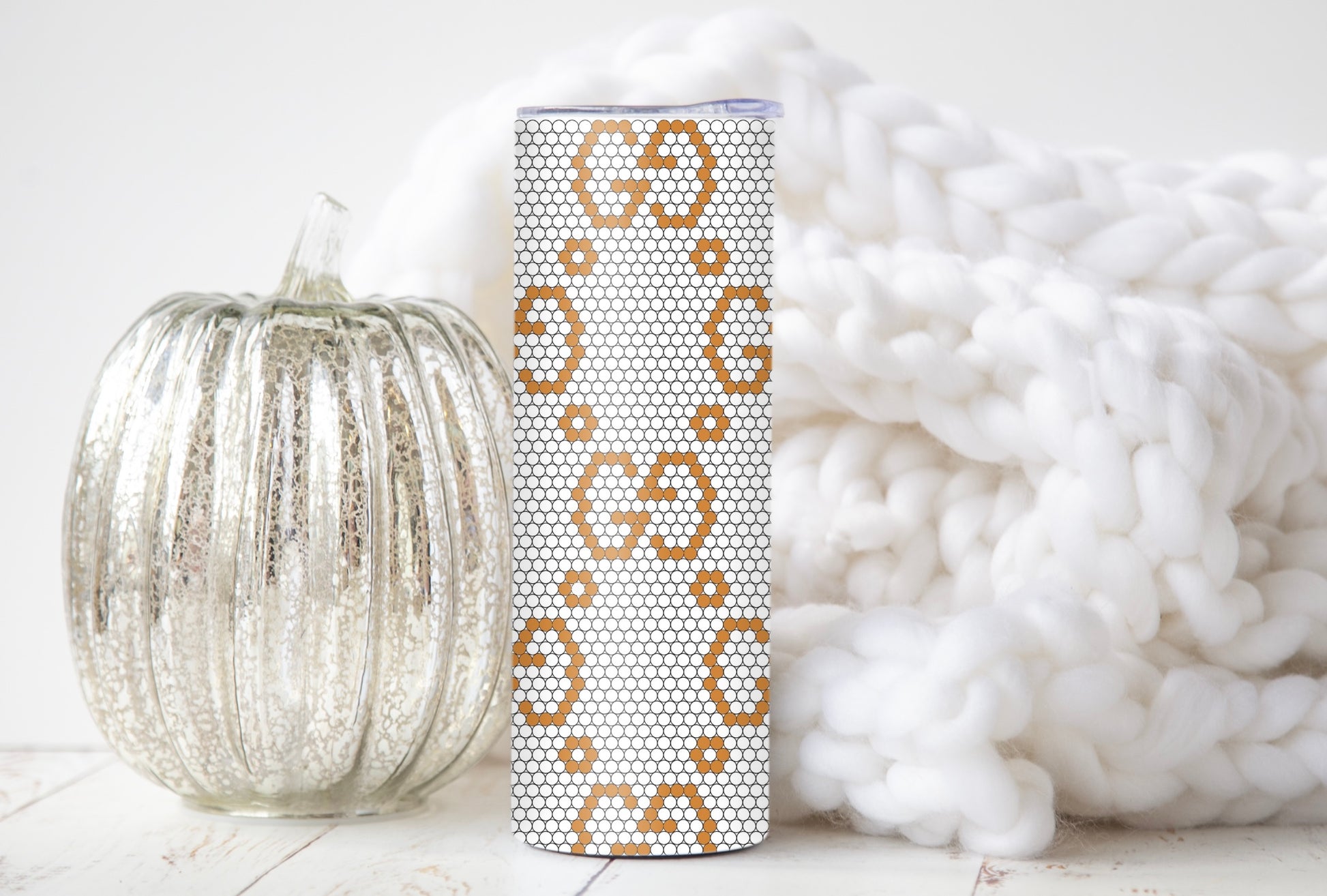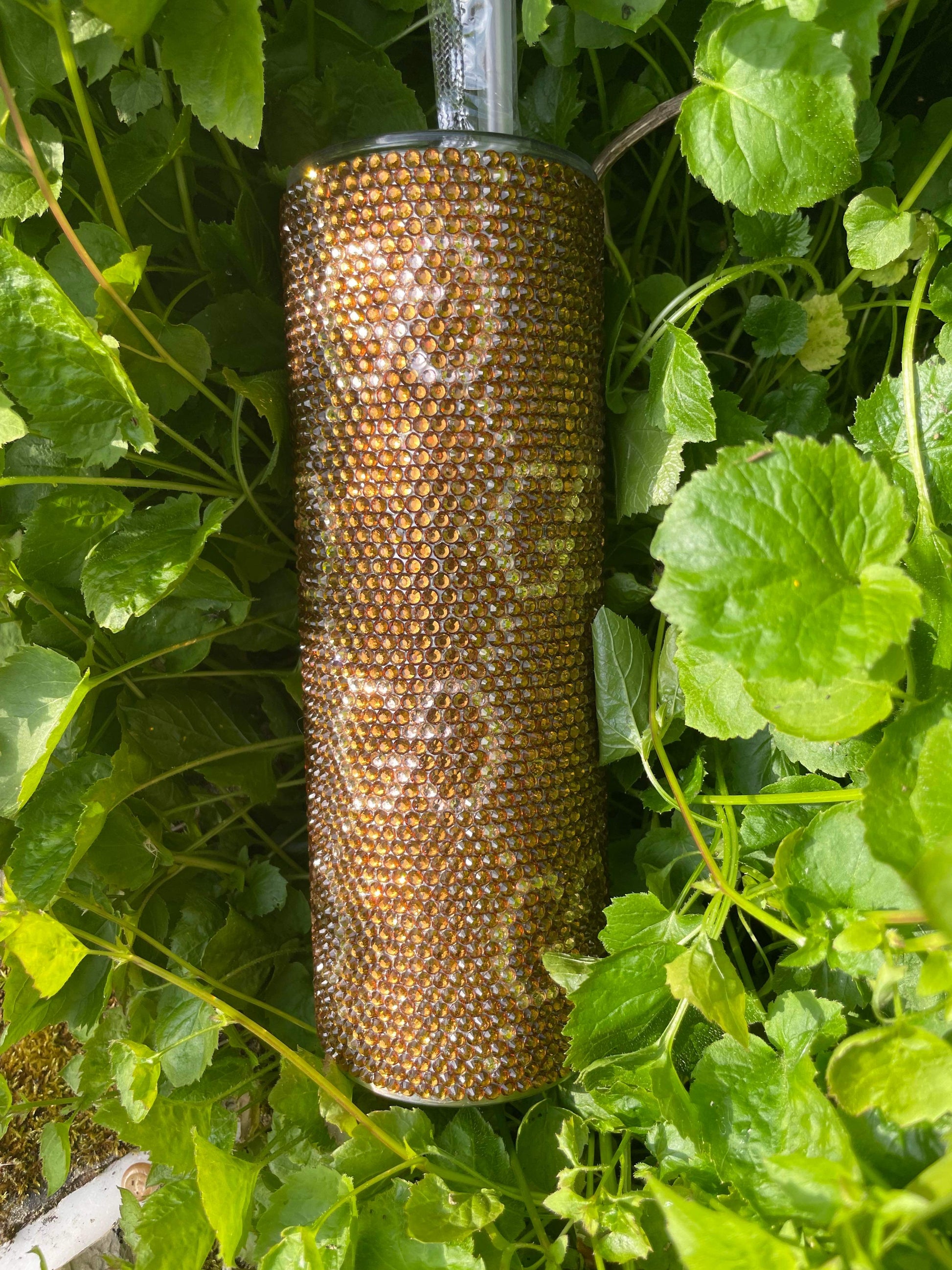 The pattern I have created has been tested out on a straight 20oz stainless steel double walled tumbler measuring approximately 23.3cm by 20.8 cm. Different tumbler brands and makes could have different measurements so make sure that you can fit the same number of rhinestones in a row as the pattern requires for. Making adjustments to the pattern by adding or deleting rhinestones will change the look of the pattern design.