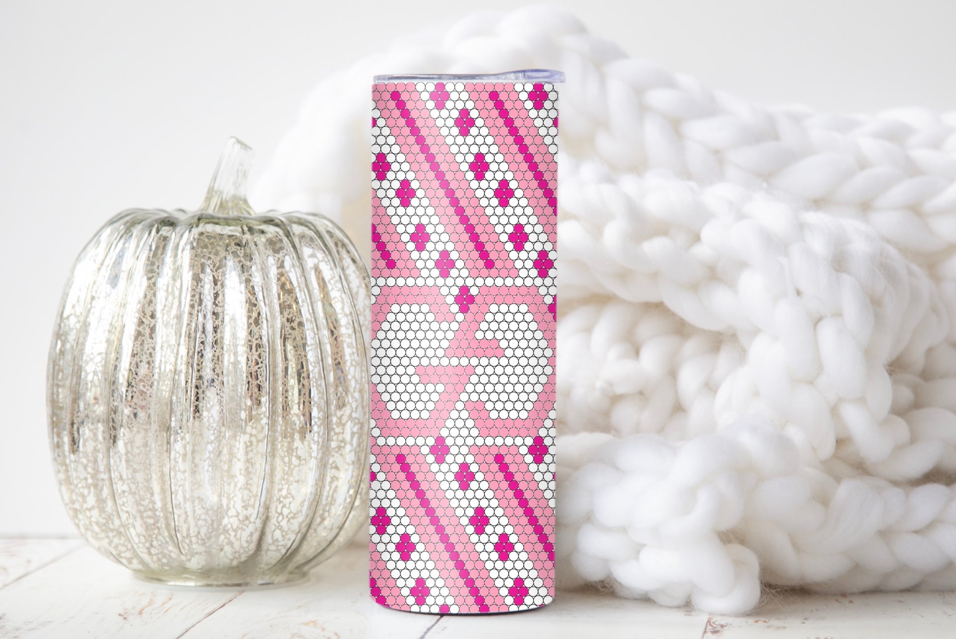 This tumbler pattern is intended to be used as a visual guide to follow for hand-gluing flatback rhinestones, acrylic or glass rhinestones, to a tumbler by following the color design in the pattern. The pattern only fits a 20oz straight double walled stainless steel tumbler, using SS16 OR 4mm rhinestones.