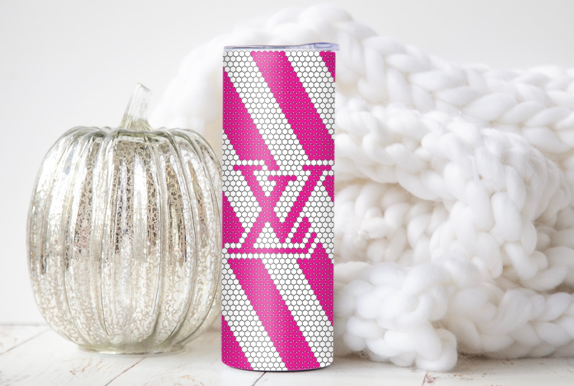 This tumbler pattern is intended to be used as a visual guide to follow for hand-gluing flatback rhinestones, acrylic or glass rhinestones, to a tumbler by following the color design in the pattern. The pattern only fits a 20oz straight double walled stainless steel tumbler, using SS16 OR 4mm rhinestones.